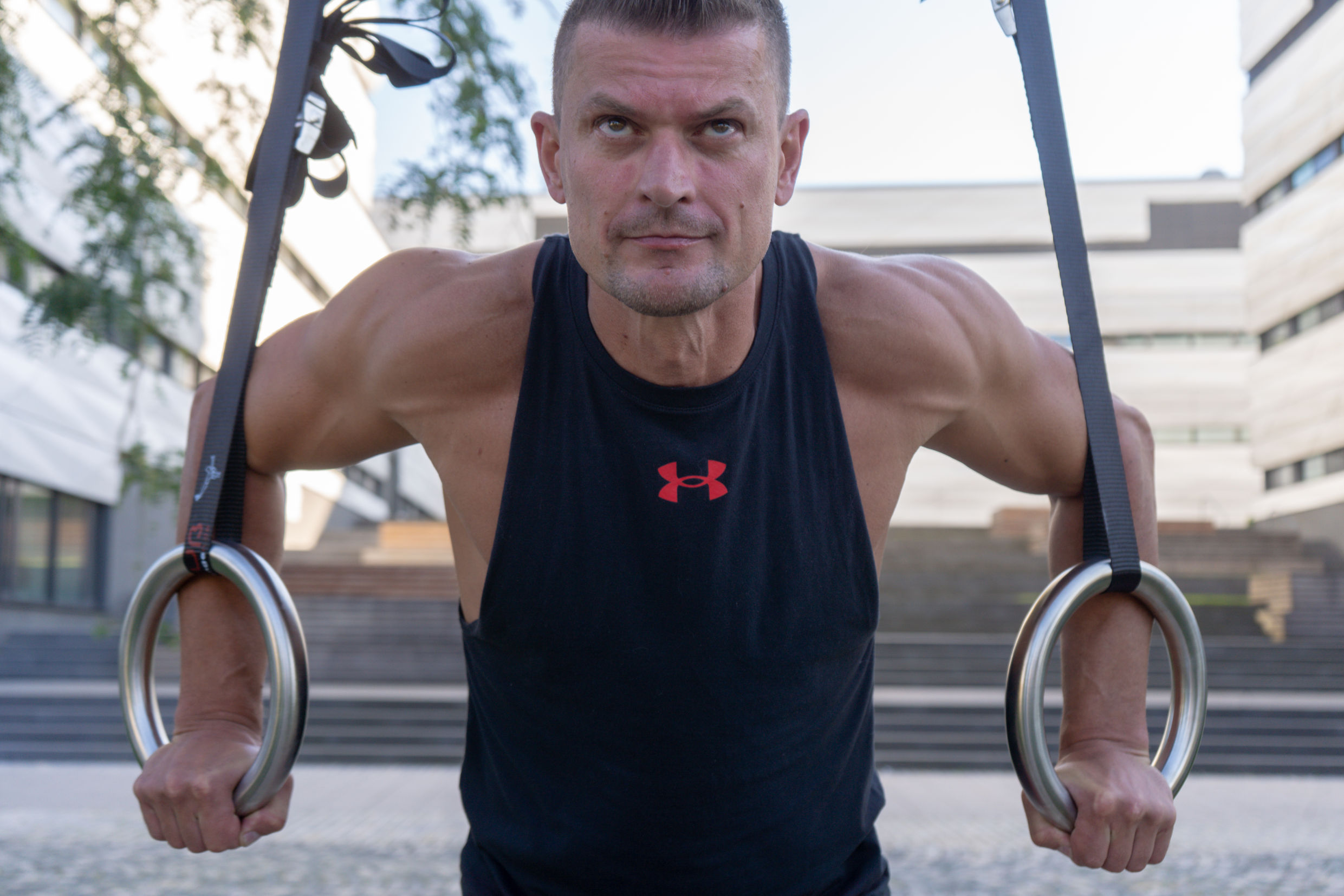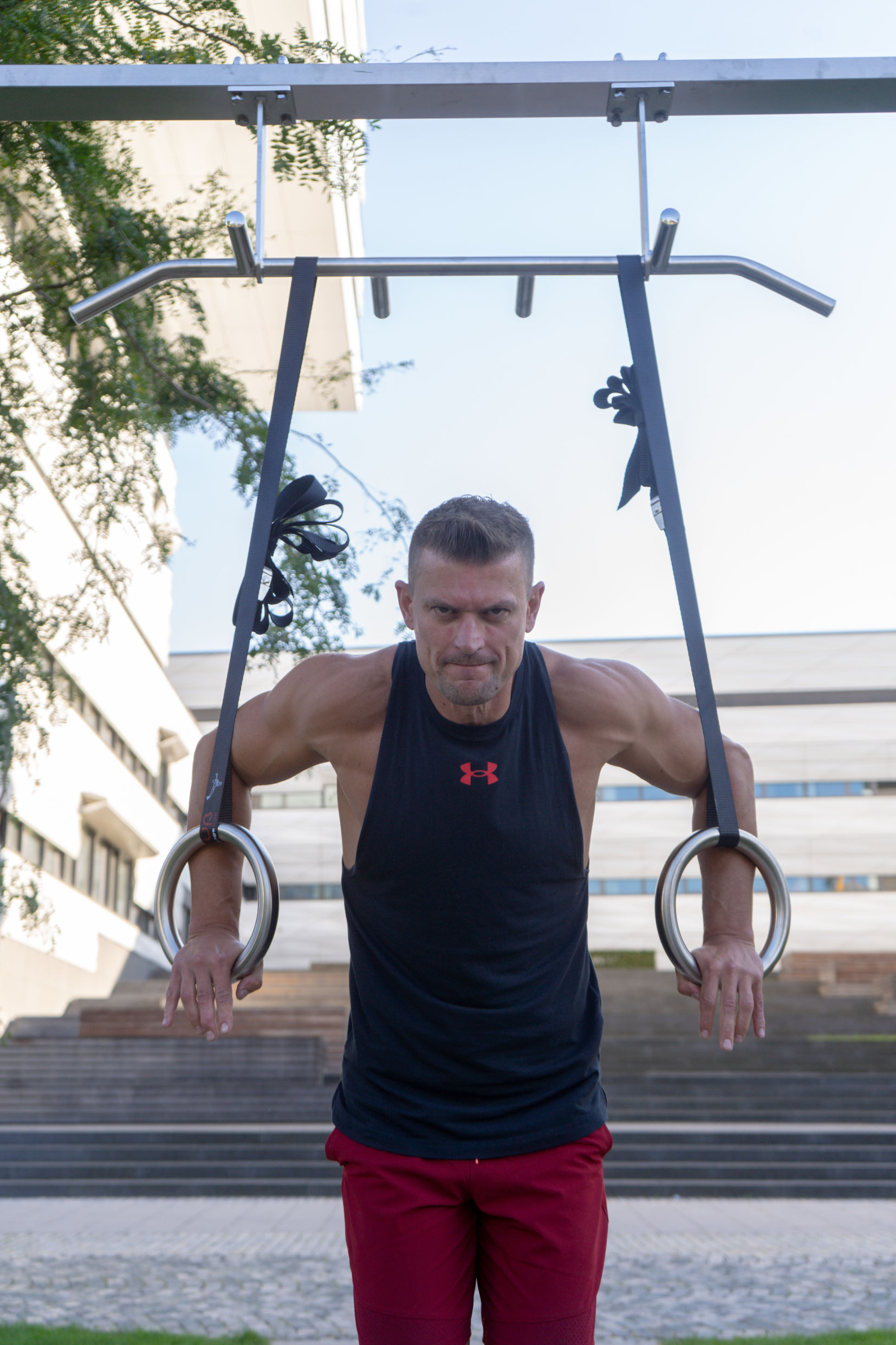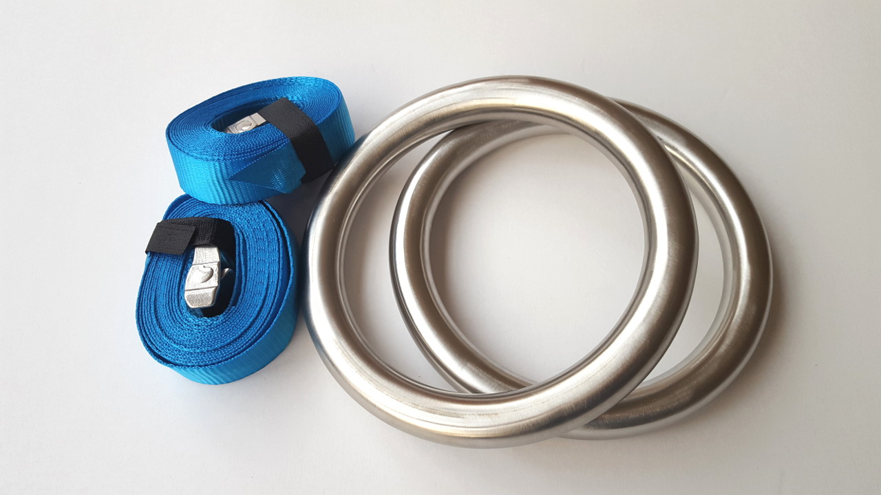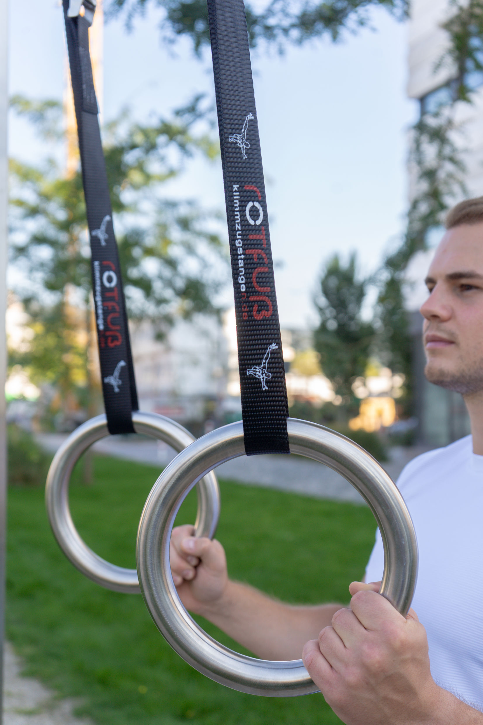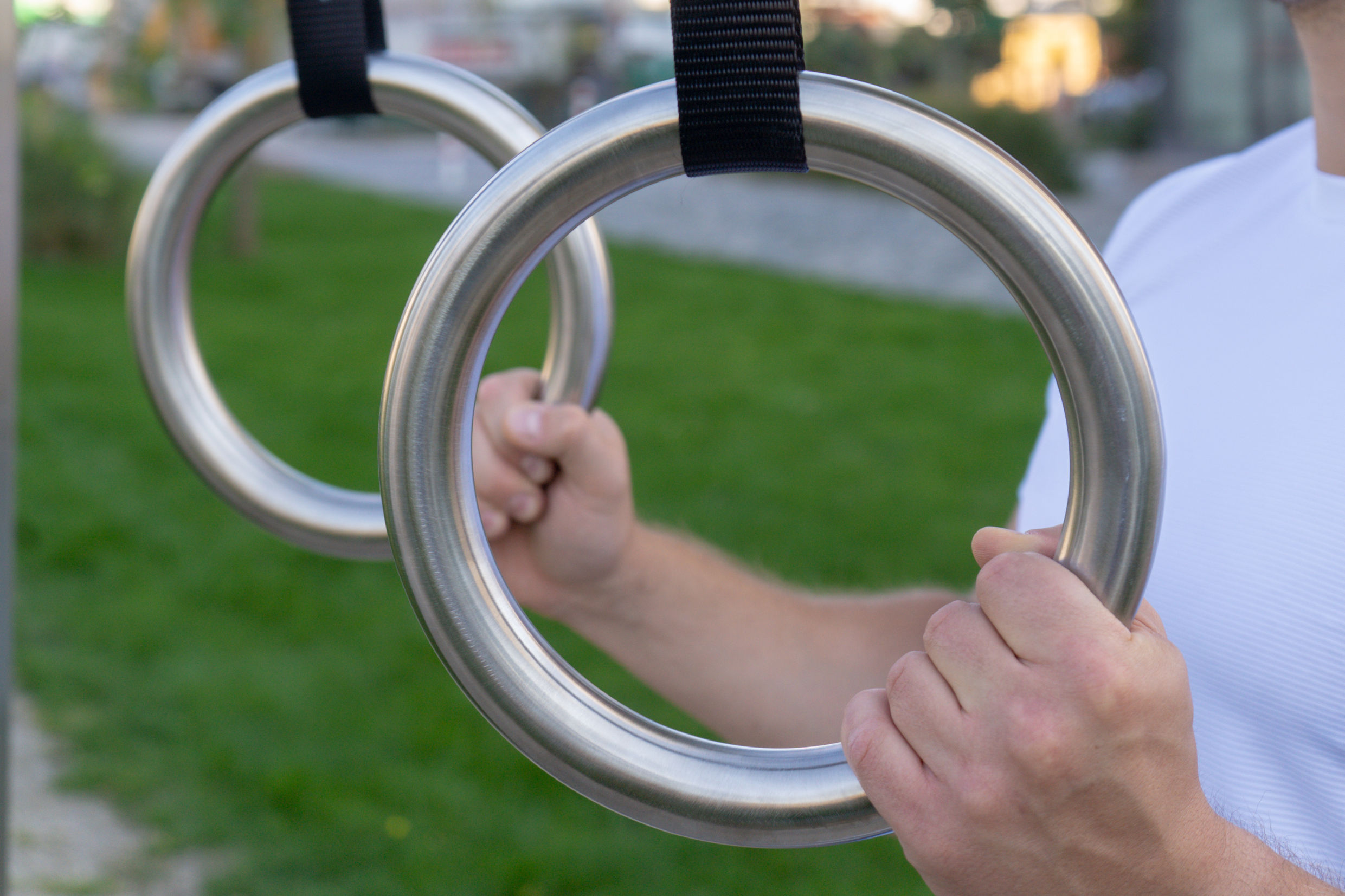 Turnringe aus Edelstahl befestigt an der Klimmzugstange P4